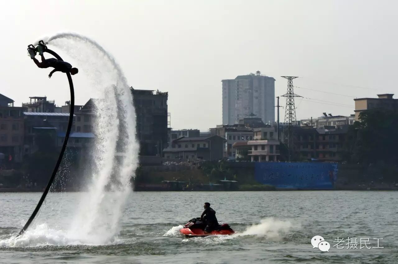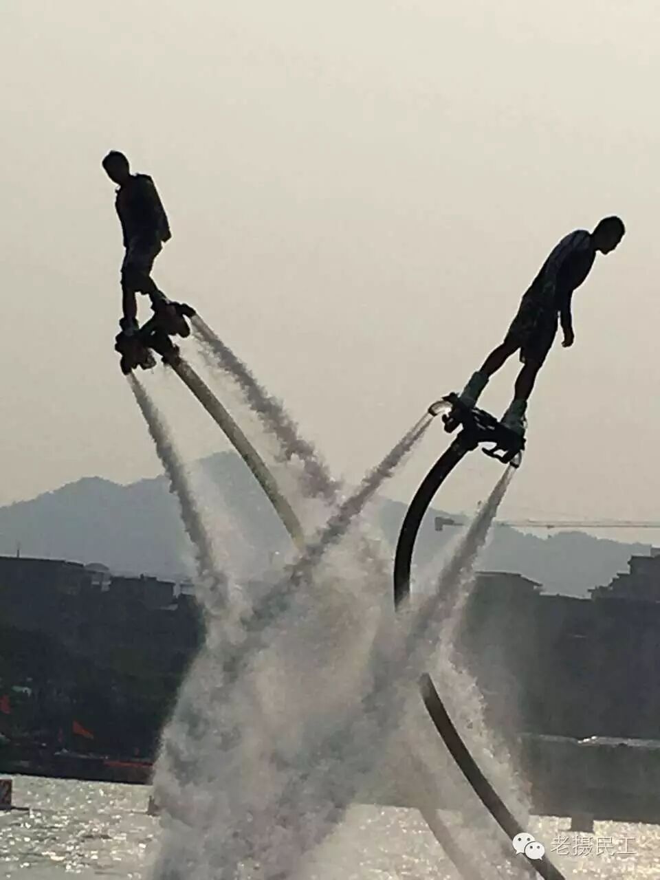 9月21日,水上飞人在龙舟赛上助兴。(刘广铭 摄)