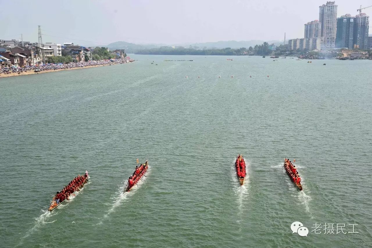 当日,广西融安县第十八届龙舟大赛在融安县城风光秀美的融江上举行,共有37支男子龙舟队角逐传统龙舟赛和800米直道逆水竞赛两项比赛的冠军。