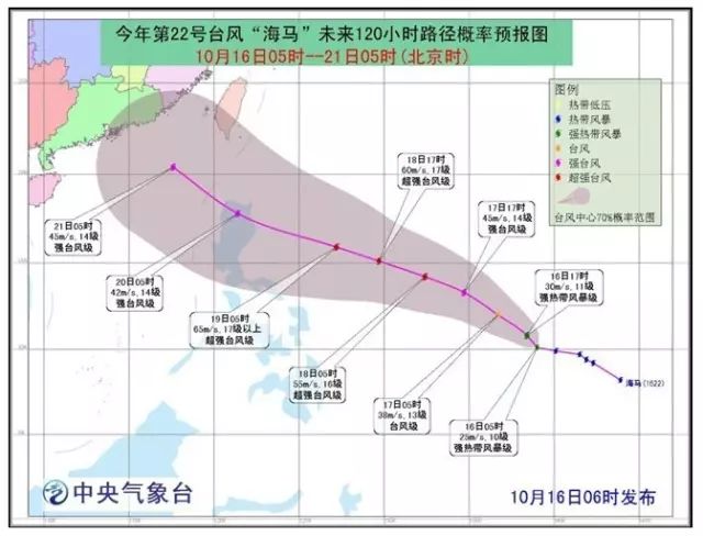 日本对“海马”的路径预测↓↓有可能于21日到22日在广东珠江口附近登陆。