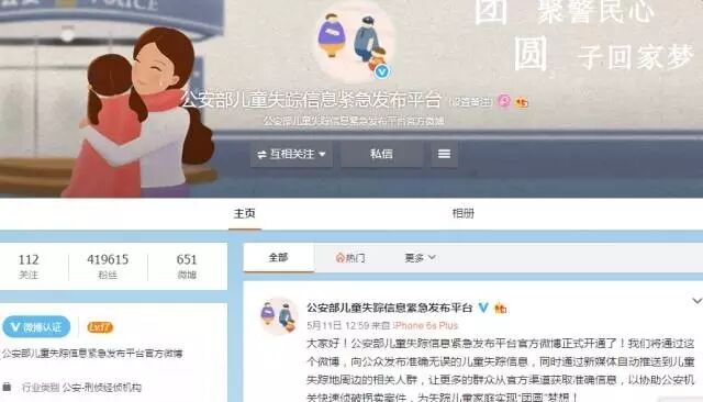 这个平台上的所有失踪儿童信息,都由公安机关实时编辑发布,真实有效。这些未成年人失踪信息会同步推送到紧急发布平台的微博上。而这个平台更让人振奋的一个功能,是可以依托微博和高德地图的定位功能,把失踪儿童信息精准投放给事发地区周边人群,并随着时间增加扩大推送半径,发动无数双眼睛、无数双耳朵,共同守护孩子的安全。