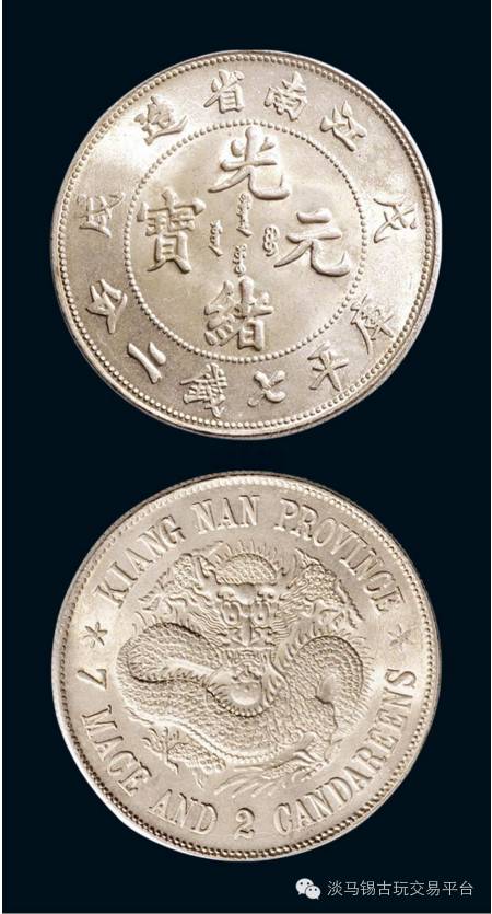 江南省造银币在南京西水关内造币厂始铸,从版别上分:光绪二十三年()江南省造是无干支纪年,其面额构成是一主四辅系列,即七钱二分(一元)、三钱六分(五角)、一钱四分四(二角)、七分二厘(一角)、三分六厘(五分)。光绪二十四年<三十一年(币面已铭有戊戌、己亥、庚子、辛丑、壬寅、癸卯、甲辰、乙巳干支,藏界称之为江南八品。其中仍是一主四辅系列的仅见己亥版、庚子版,其他干支版缺三钱六分和三分六厘两辅币,呈现的是一主两辅币。从背龙图上分:二十三年无干支版,二十四年戊戌版均为蟠龙(老版龙),二十五年己亥版、二十六年庚子版分蟠龙和坐龙(新版龙)两图版。二十六年至三十一年各版均为坐龙图。