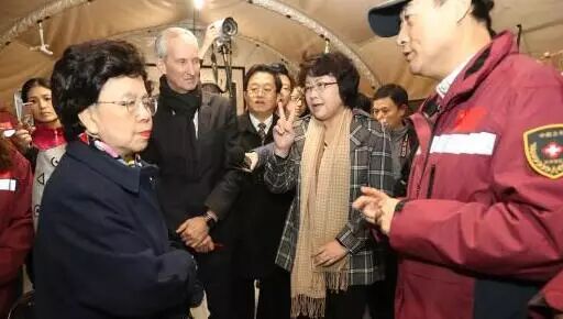 第九届全球健康促进大会期间,世界卫生组织总干事陈冯富珍来到上海市东方医院南院,观摩并检阅中国国际应急医疗队(上海),网络丨图