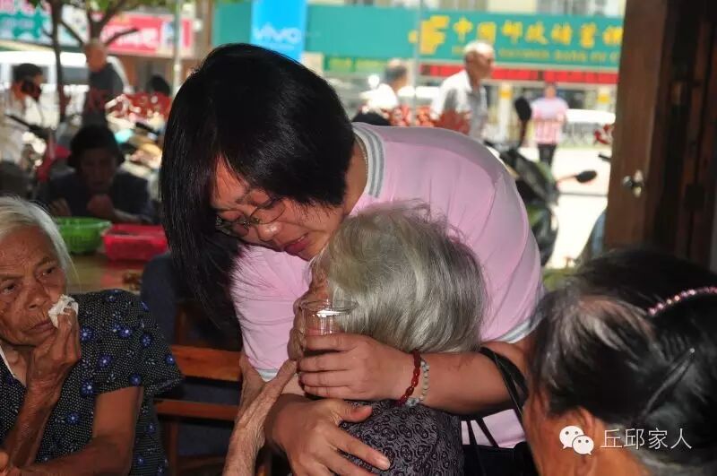 特别是在蒙公,当跟一位95岁高龄,且双目失明长达15年之久的老奶奶交流时,开始时彼此都听不懂在说些什么,通过丘秋芳和丘启新两位宗亲的陪同和介绍后,老奶奶紧紧拉住我的手,直至抱成一团哭成泪人,好久好久都不肯放开那添满皱纹的双手………看到此情此景,也许有人会问:她的家人儿女呢?其实,她是一个很幸福的老奶奶,有三个孝顺的儿子儿媳陪伴着照顾着,丘秋芳就是她其中的一个儿子,而陪在她身边的是第三个儿媳!