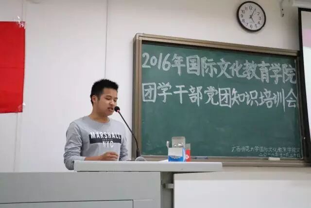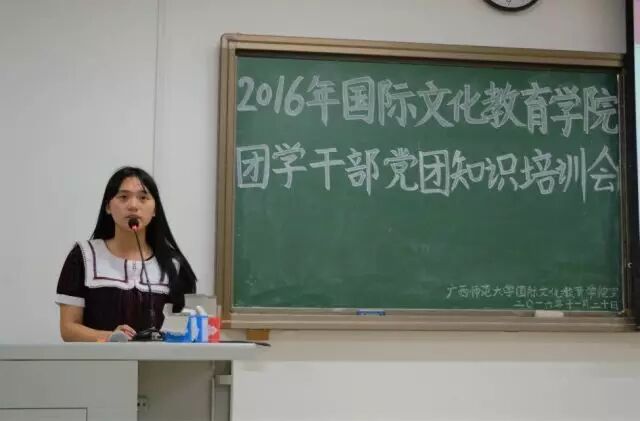 2016年11月20日下午,国际文化教育学院分团委学生会在理科楼201教室召开了2016年广西师范大学国际文化教育学院团学干部党团知识培训会暨分团委学生会与新媒体中心工作总结大会,国际文化教育学院2014、15、16级各支部团支书、组织委员、宣传委员和国际文化教育学院分团委学生会及新媒体中心全体成员聆听聆听了这次大会。其中,国际文化教育学院分团委书记蒋潇潇老师和国际文化教育学院学生党支部凌彩连学姐也到场参加了这次大会。