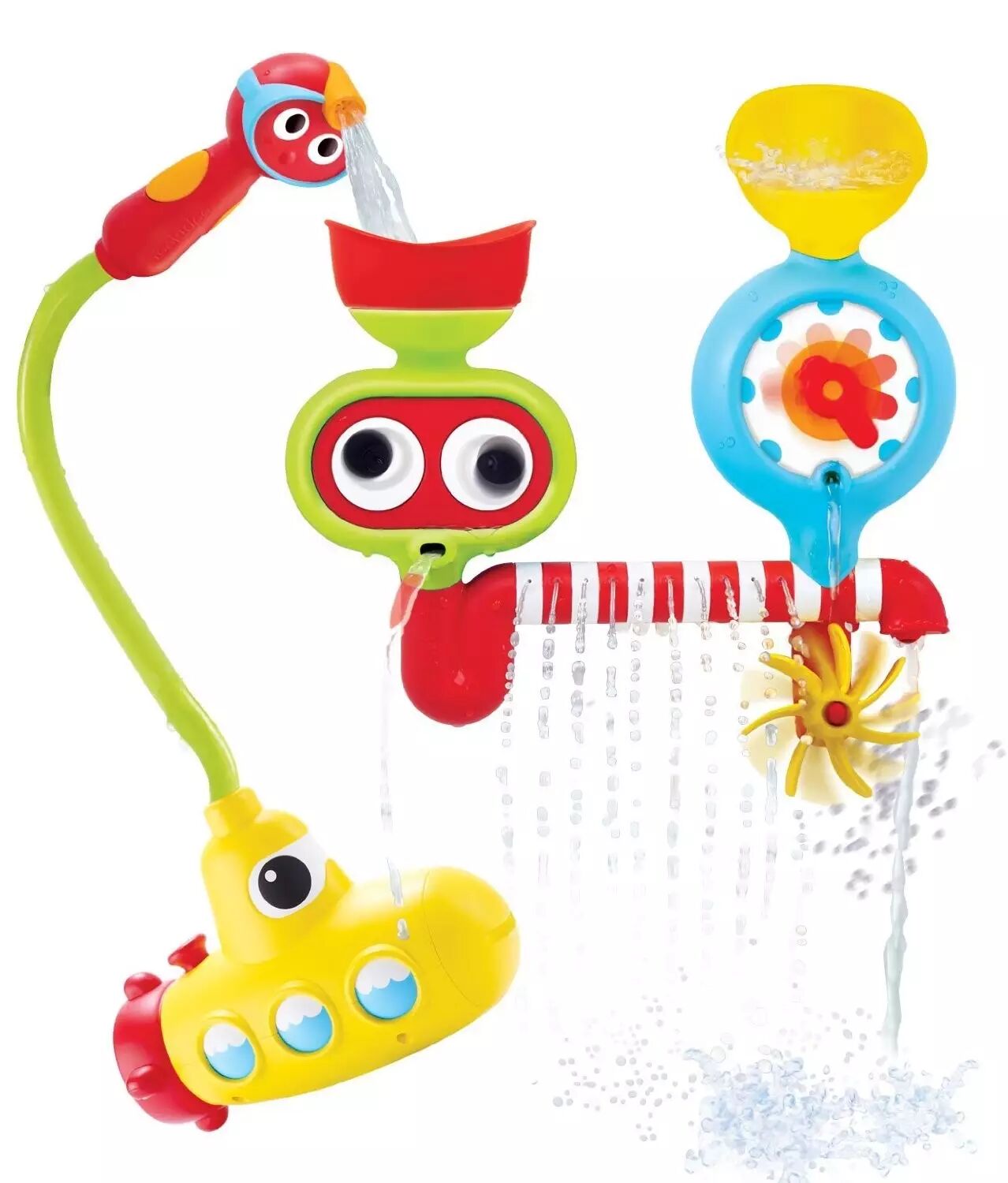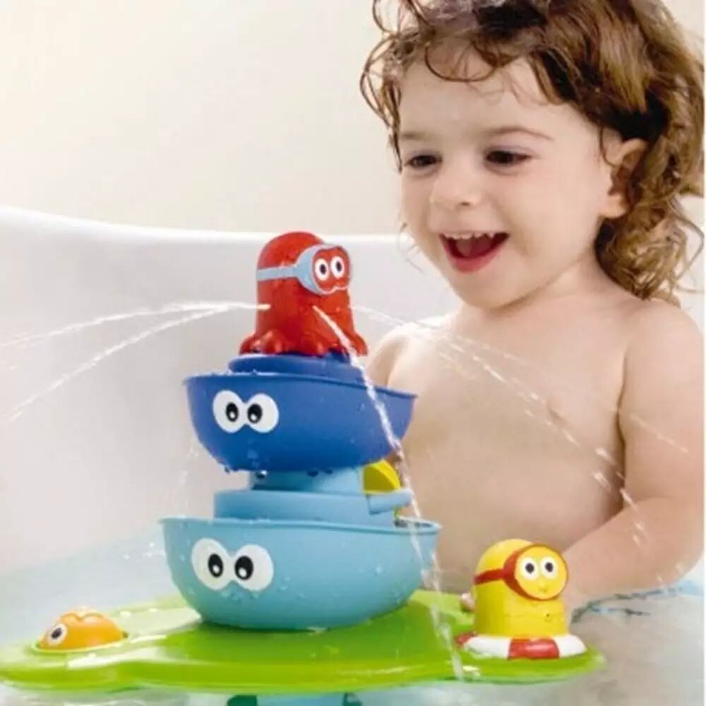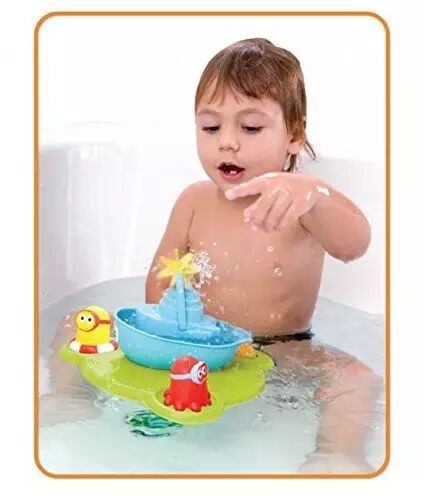 一个别具一格的水循环压力系统,可以将水通过潜艇吸上去并且形成一个喷泉效果,在孩子洗澡的时候还可以冲淋。