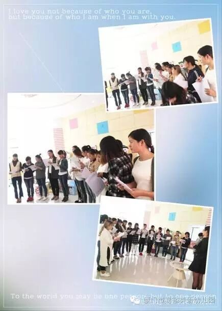 厦门市嘉裕英语幼儿园创办于1998年,是一所集教学管理、师资培训、托幼教育一体化的大型幼教机构。至今幼儿园拥有三十九所标准化的大型连锁幼儿园,总占地面积达十五万平方米,拥有教职员工二千余名,幼儿一万三千余名 。嘉裕英语幼儿园环境怡人,园内设施齐全:有大型运动器械、图书室、电脑房、电子琴、科学发现室、蒙氏操作室等。幼儿园拥有一支团结敬业、开拓进取、活泼向上、充满爱心、富有创造力的教育团队。幼儿专业教师、英语教师、外籍教师、才艺教师组成了嘉裕强大的师资队伍。