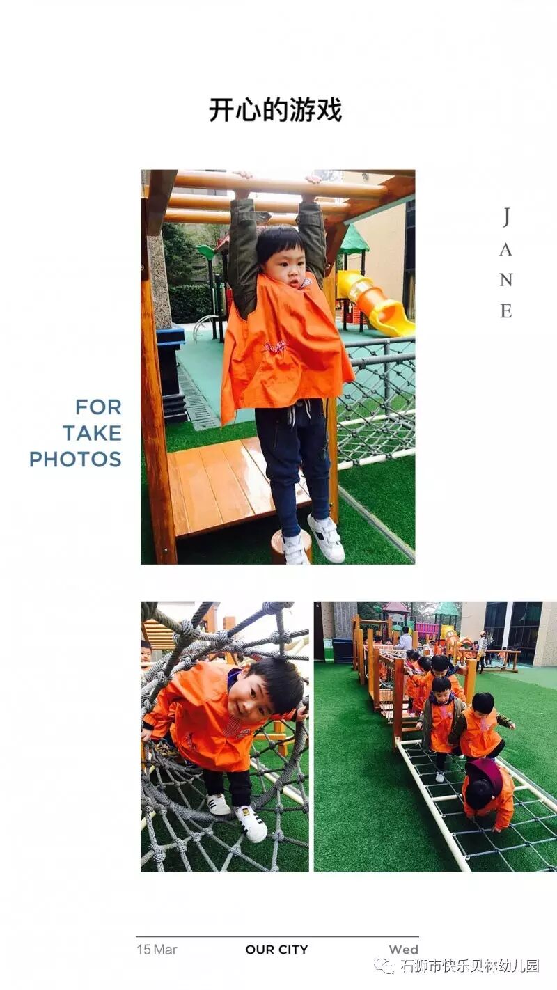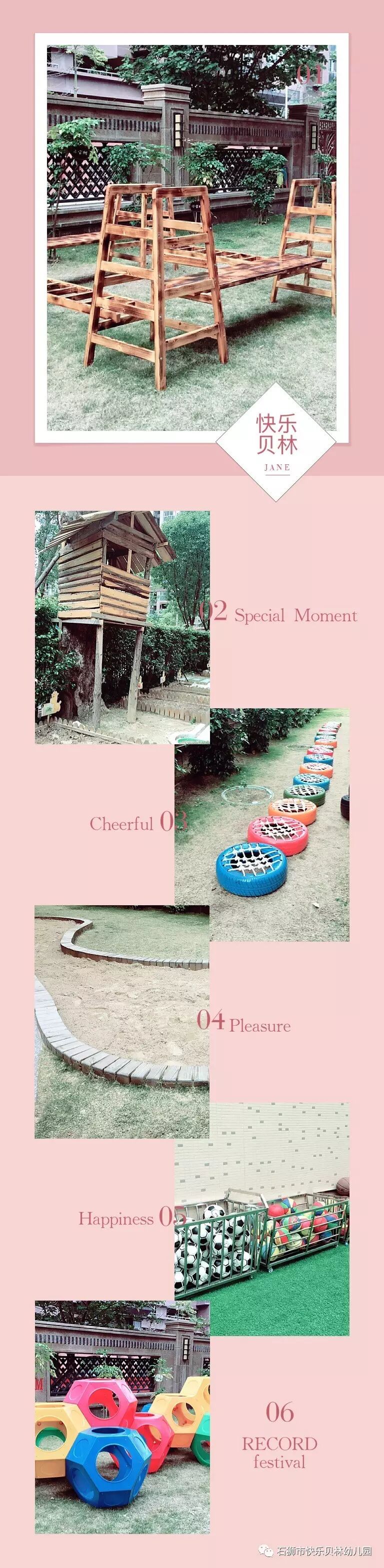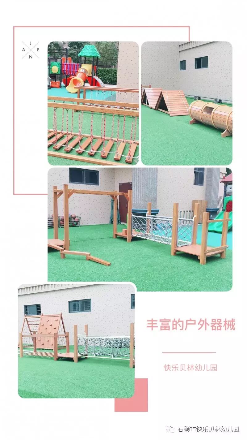 让孩子们在各种丰富的活动中身心得到全面协调的发展,体现了快乐贝林幼儿园健康第一的培养目标。同时,它给幼儿园的一日活动增添了新的活力与生机,使幼儿园日常活动呈现出勃勃生机。各式各样的户外玩具让孩子们在快乐的游戏中度过幸福的童年。