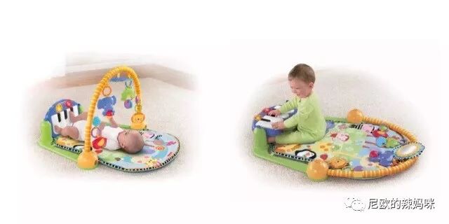 费雪这款健身架也是宝宝们人手一个的玩具了吧。这款玩具能同时满足多方面能力发育的需要吧,玩的时间比较久。接近3个月开始躺着玩,宝宝会对镜子里的自己充满好奇和莫名的微笑。到后面坐着,趴着,躺着,各种变化着玩。
