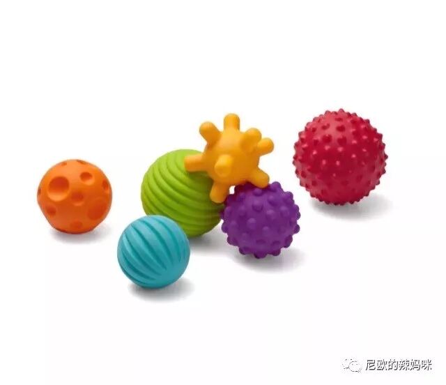 这套触感球也是强烈推荐的,刺激感官发育,练习抓握,还可以当啃咬,缓解出牙不适,是这个月龄的必备玩具.