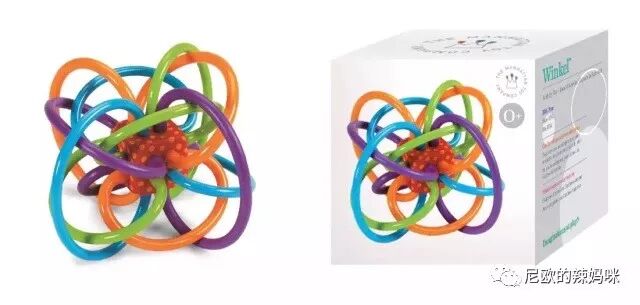 美亚上的五星好评玩具,从0个月就可以玩,色彩鲜艳,启发宝宝对色彩的感知。neo是4,5个月才突然爱上这个玩具的。球形造型,非常适合抓握,中间的方块会摇动的沙沙响。材质安全是PU软管,不掉色,不含BPA,做工精良,球状设计,不会夹手,也不会担心被戳到,放心啃咬。neo爱不释手的原因,大概就是很好咬了,缓解了他准备出牙的不适。