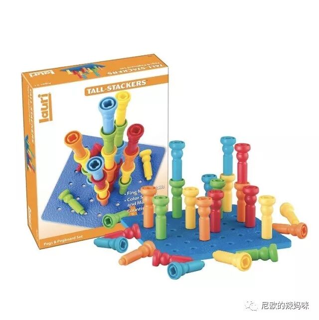 钉板这种有些类似于积木,色彩丰富,组合多样,开放性好。这个塑料栓和橡皮板,同时训练了抓握和插拼,颜色和空间上的各种组合,可以开拓想象和创造力;同时也是不错的亲子玩具,最近都陪着尼欧认颜色,“下五子棋”虽然他还不是很能理解规则。