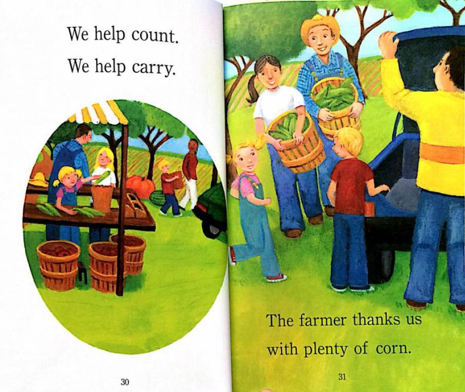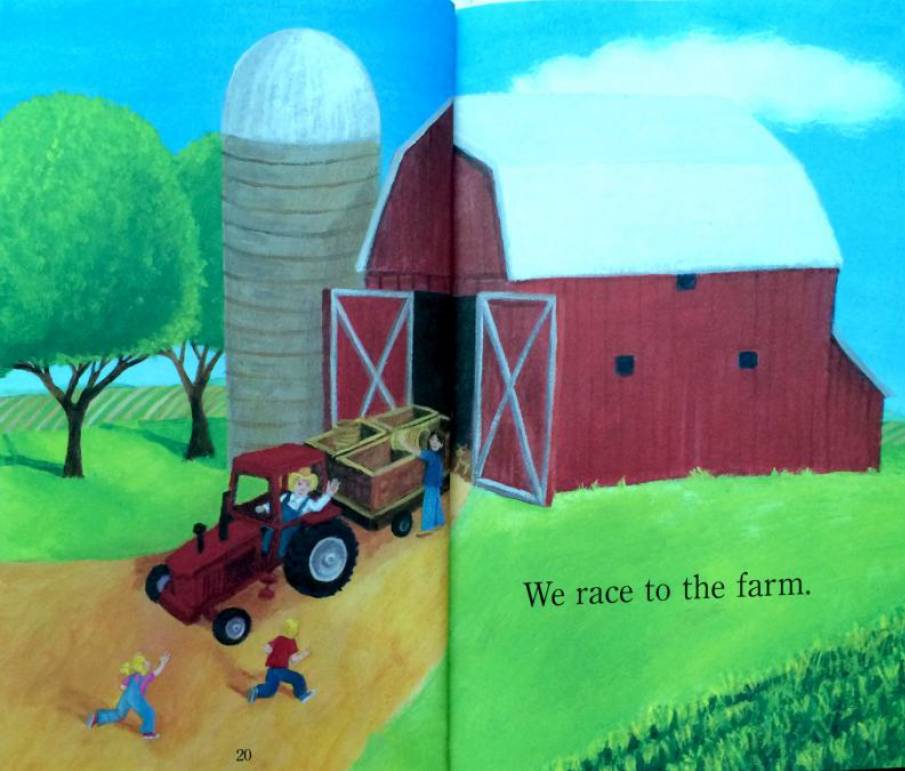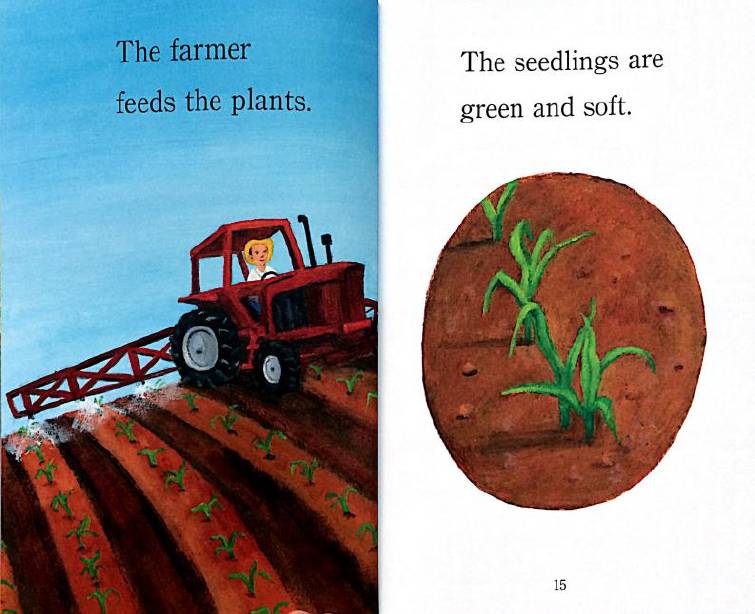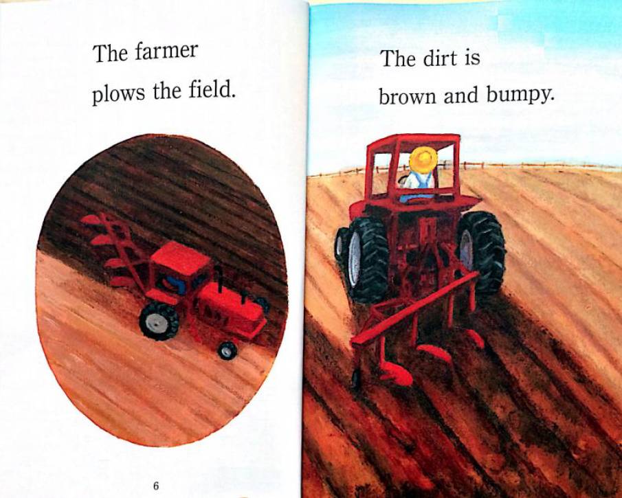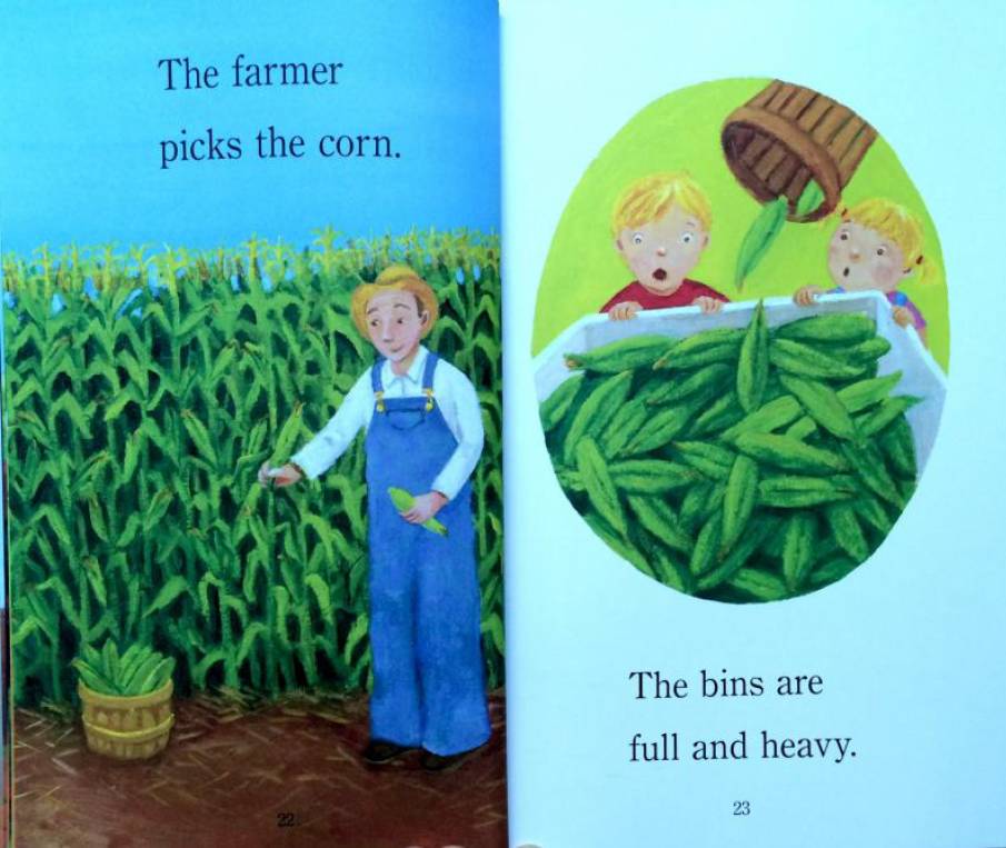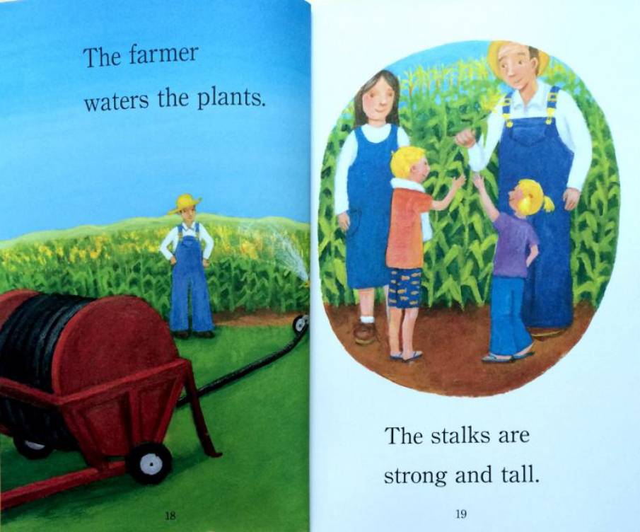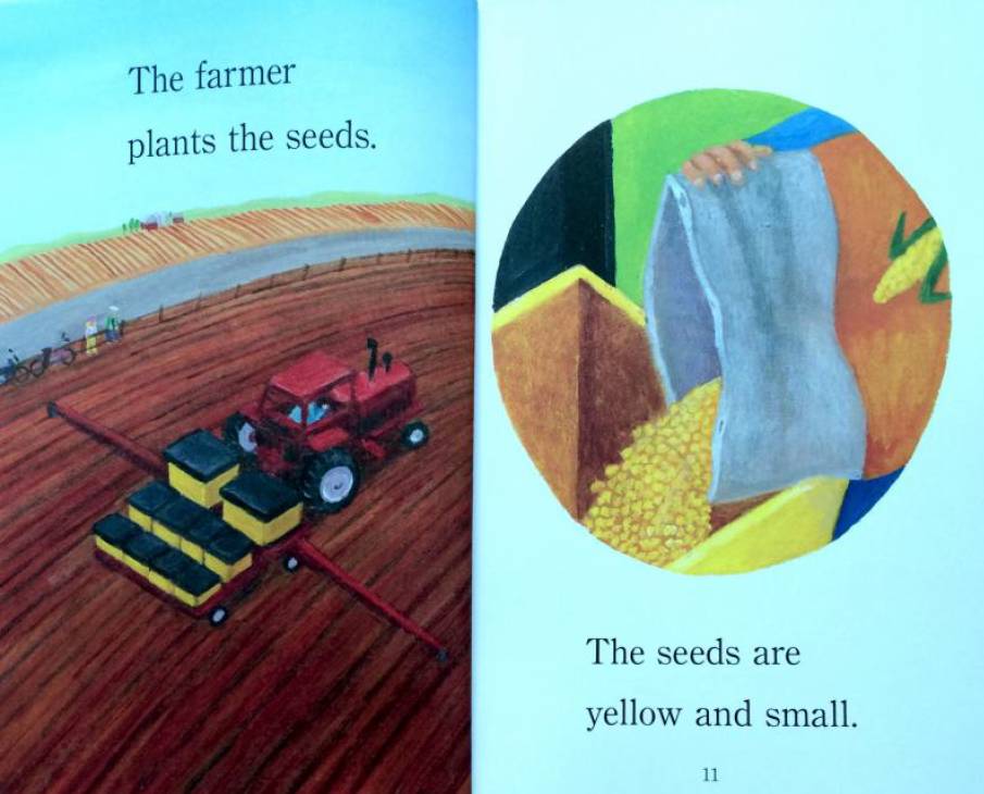 Corn Aplenty这本书中,作者用一个旁观者的角度描述了邻居家农场整个玉米的种植过程,从犁地、播种、施肥、浇水、再到大丰收。种植并不是一个简单的过程,其中少不了对植物的呵护跟耐心的等待,只有经过那一系列漫长的过程,才会有最后的收获。