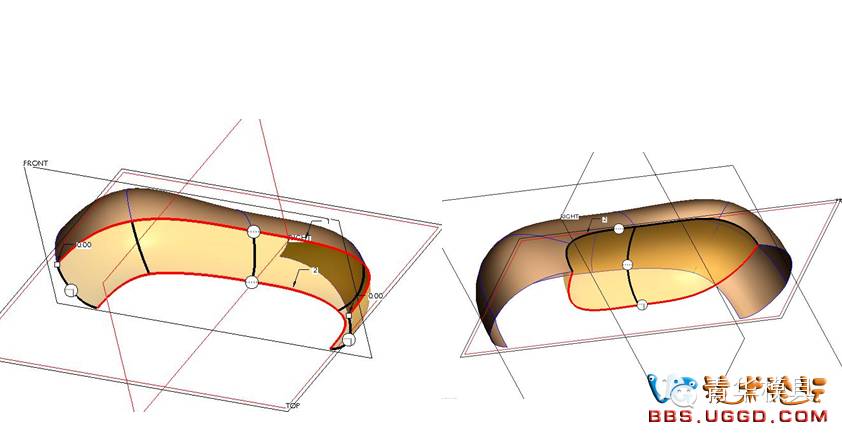 2.使用边界混合构建半部分的曲面,然后继续用边界混合构建内部的曲面(如下图)