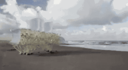 都会在海滩上看见这样巨大的怪兽走来走去。
