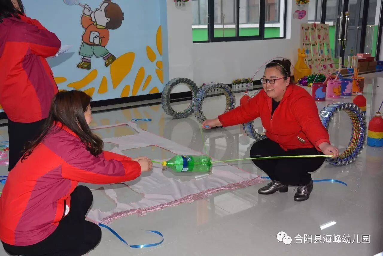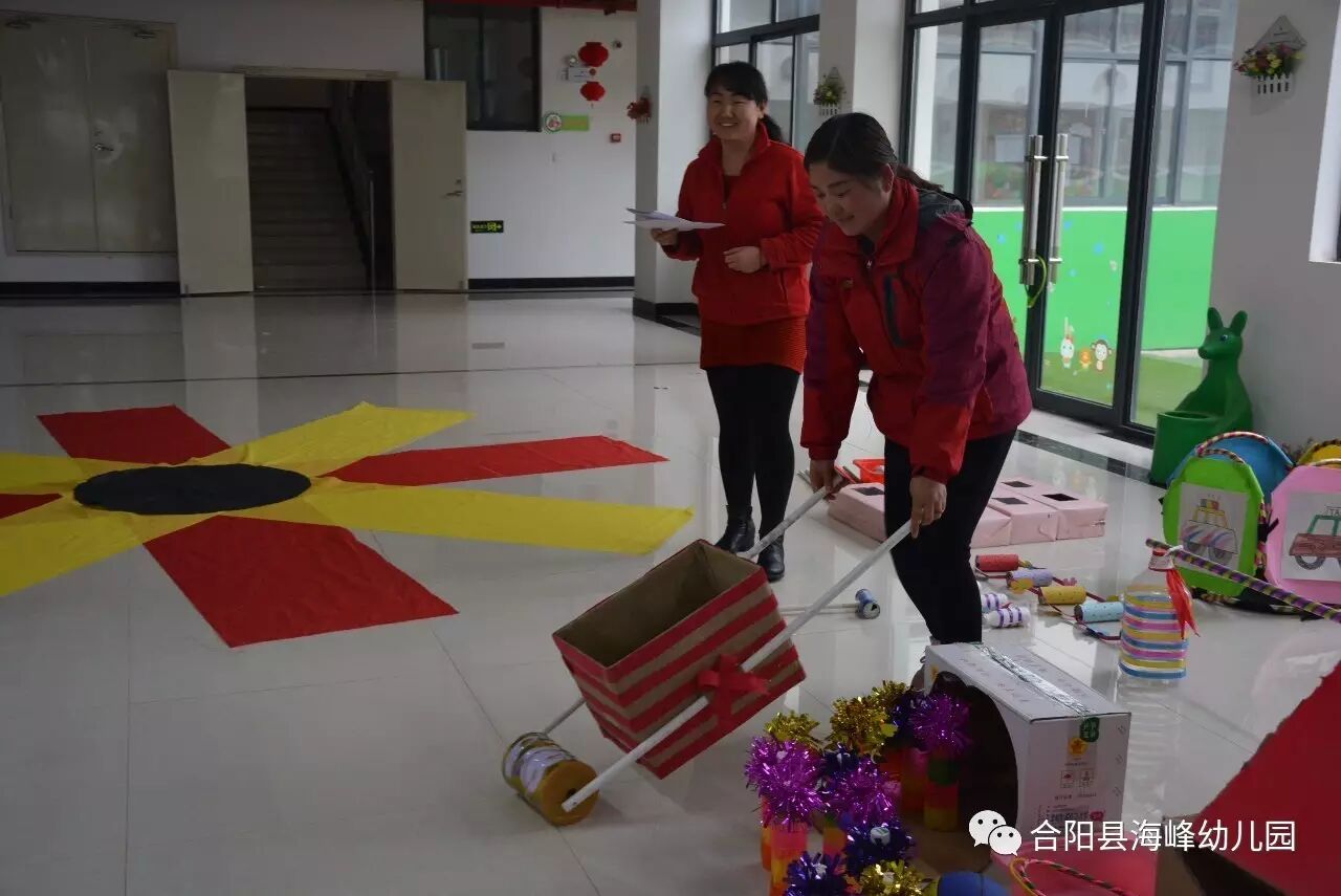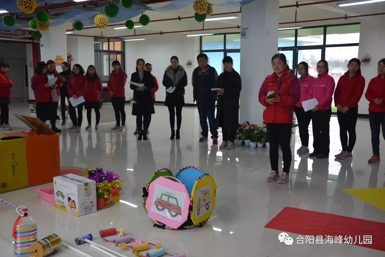 为了进一步丰富幼儿户外体育活动内容,激发幼儿对体育活动的兴趣,满足幼儿开展各种体育游戏的需要。3月23日下午,海峰幼儿园举行了“小材料 大创意”自制户外体育教玩具评比活动。