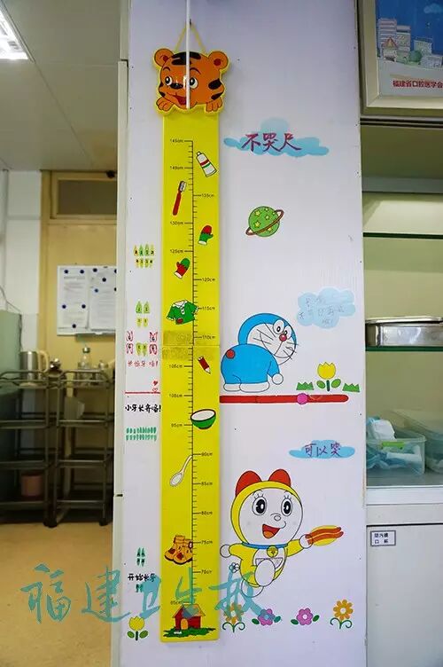身高高于红线的是大孩子了,看牙是不能哭哟。