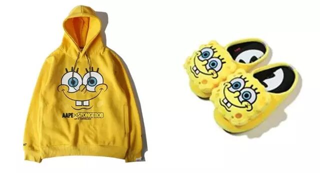 AAPE × SPONGEBOB的海绵宝宝拖鞋和卫衣