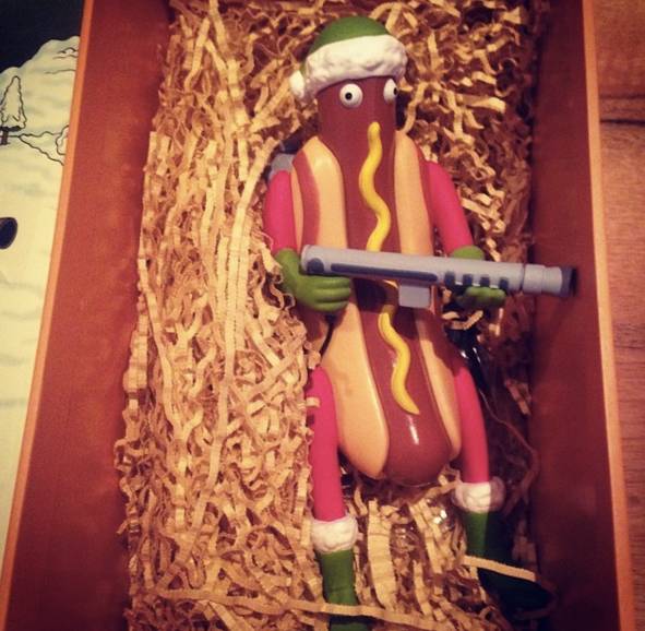 这是由《志明与春娇》的导演彭浩翔专门给朋友们打造的热狗君,数量十分稀少,而且只送给好朋友。所以乐哥,你还是快点回去拍《志明与春娇3》吧。