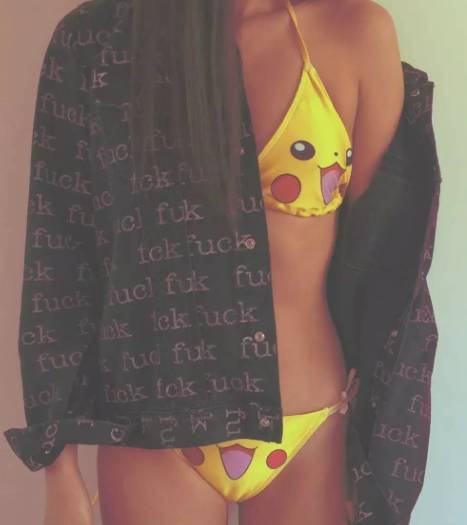 水原希子买下来的皮卡丘比基尼上身效果如下,这套比基尼只要几十块哦!