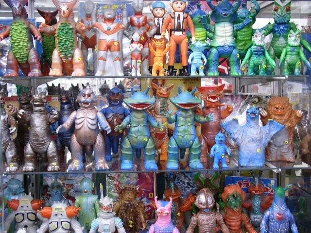 日本中古玩具店中旧 Sofubi 仍是主力炒卖商品之一,Bullmark、M1 号都是经典老牌,造型越土越值钱。