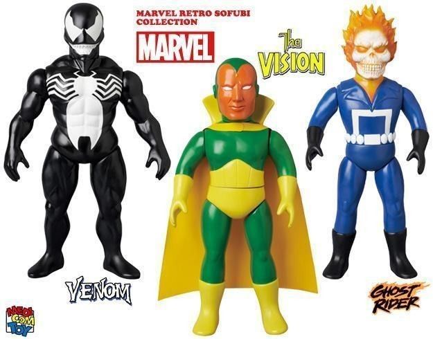 后来软胶公仔不局限于怪兽题材,有很多不同的超人和卡通都推出 Sofubi,而且造型都充满年代感,呆笨傻的十分可爱,日本潮玩名牌 Medicom 就推出一系列超人 Sofubi。