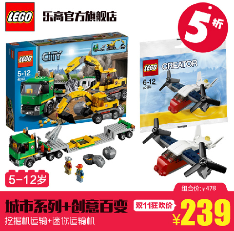 这次乐高天猫店推出的产品是5折起,作为玩具届的硬通货,乐高的价格一向非常稳定,5折的确很吓人。不过需要注意这是搭配销售,即一个热门款搭配一个清仓货。如果清仓货算作赠品的话,大概折扣是6-7折。