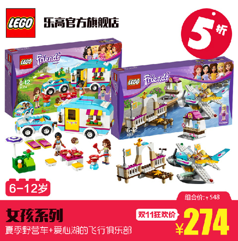 对于6岁以上女孩也可以购买女孩系列L41034夏季野营车+L3063爱心湖的飞行俱乐部 组合装