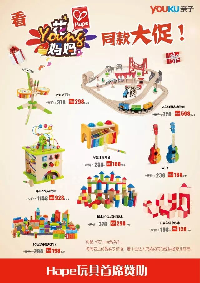 德国Hape玩具夏日大促,Hape首席赞助YOUKU亲子节目“花Young妈妈”,节目同款特价推广!
