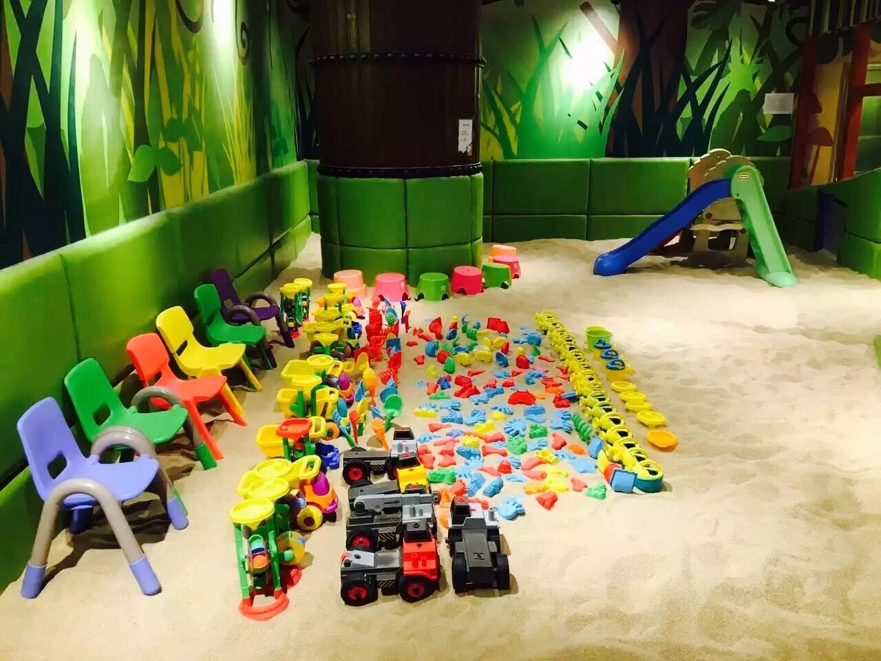 阳光海沙定期的杀毒杀菌,为小朋友提供干净好玩的阳光沙池,搭配各种沙池玩具,漏斗,独轮车,等你来玩。