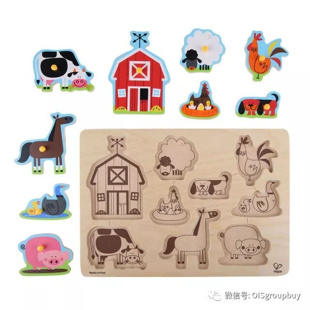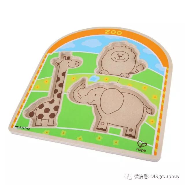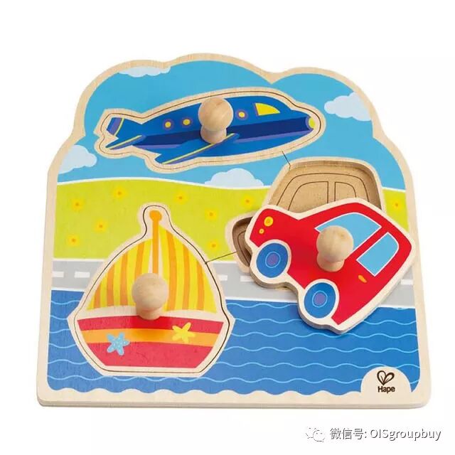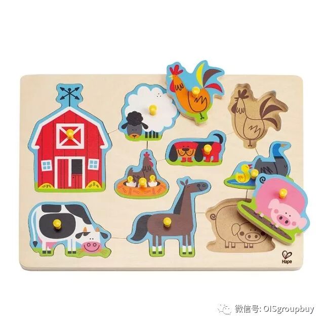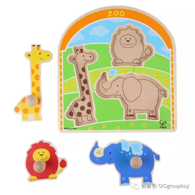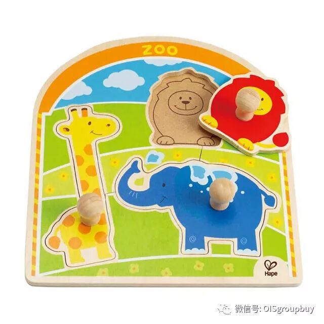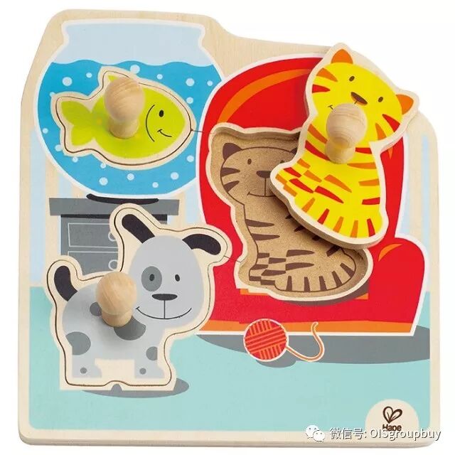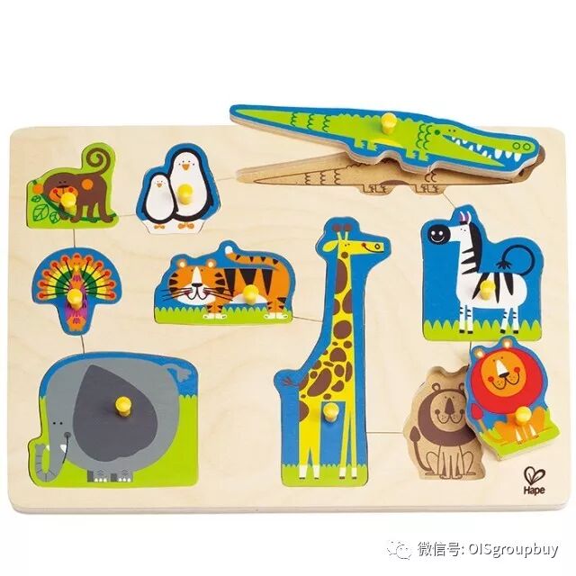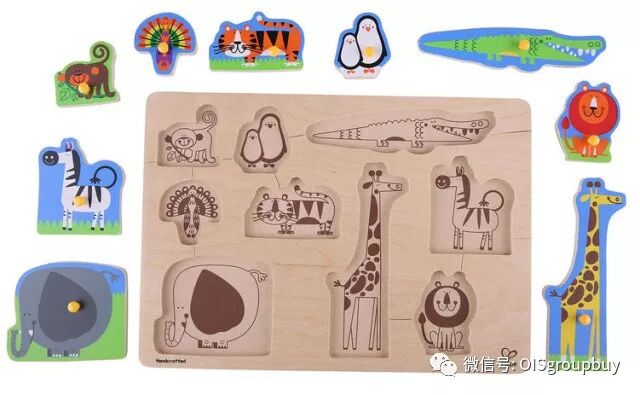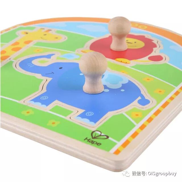 这款拼图配有大抓手,让一岁左右的宝宝们也能轻松的抓起,并能恰当地用力将拼图放回准确的位置。