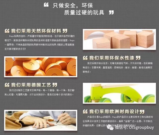 由一个普通幼儿园玩具供应商华丽转身成为享誉全球的优质玩具品牌,我们经历了漫长的蜕变。今天,Hape 注册商标,已经成为一个行销全世界50多个国家和地区的国际尖端竹、木制玩具品牌。它不仅致力于研制精美的玩具,而且还坚持关注地球母亲的未来,致力于担 当行业的“环保卫士”,从源头、过程、终端等各环节进行严格控制,力求最大限度地降低对环境的负面影响。
