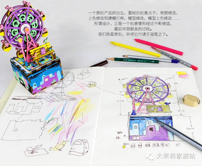 八音盒的各个部件精密,这势必就要求制作工艺更精细,Robotime的原创八音盒DIY产品有着高颜值,这完全离不开背后的一道道严格工序。