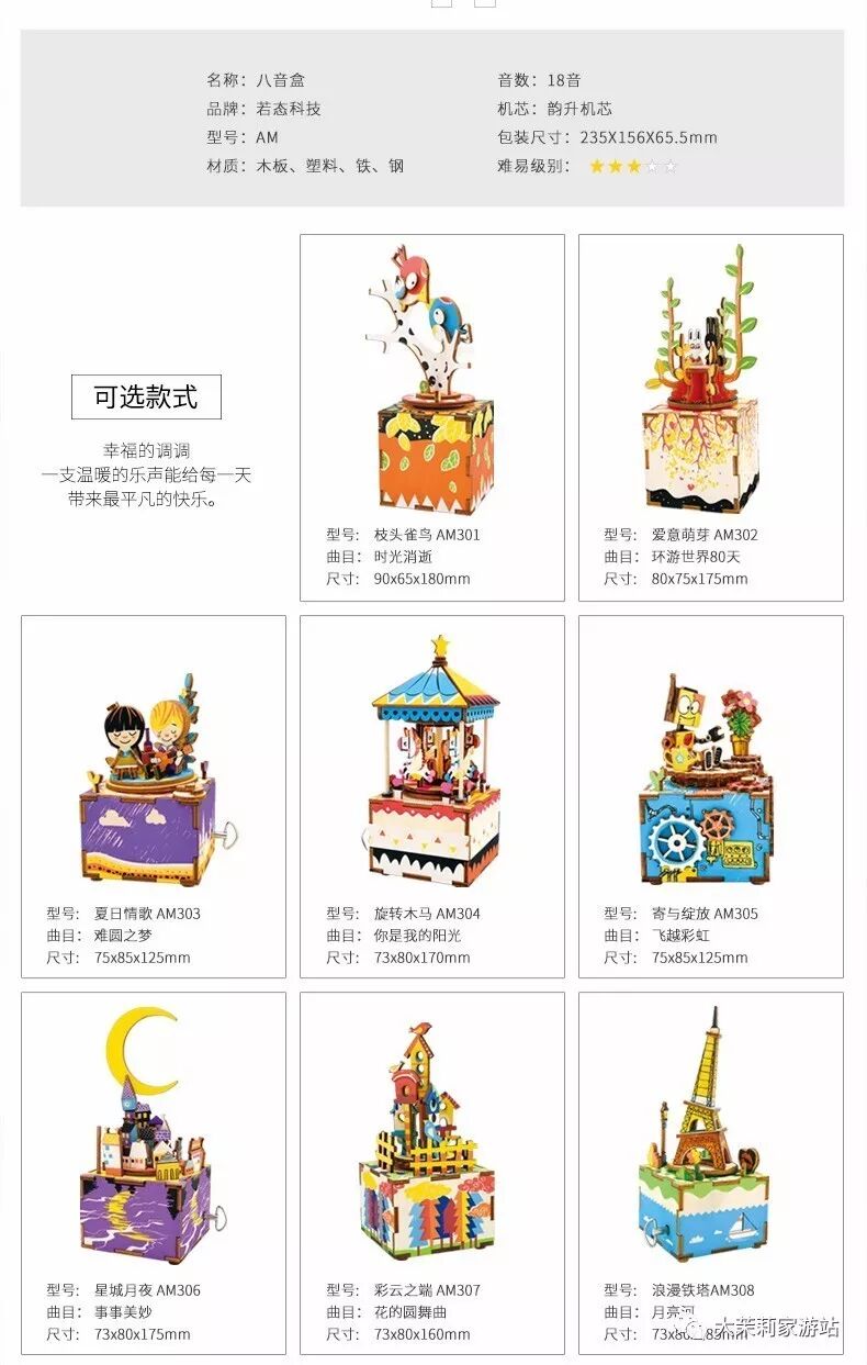 1. 团购品种:Robotime 可DIY八音盒