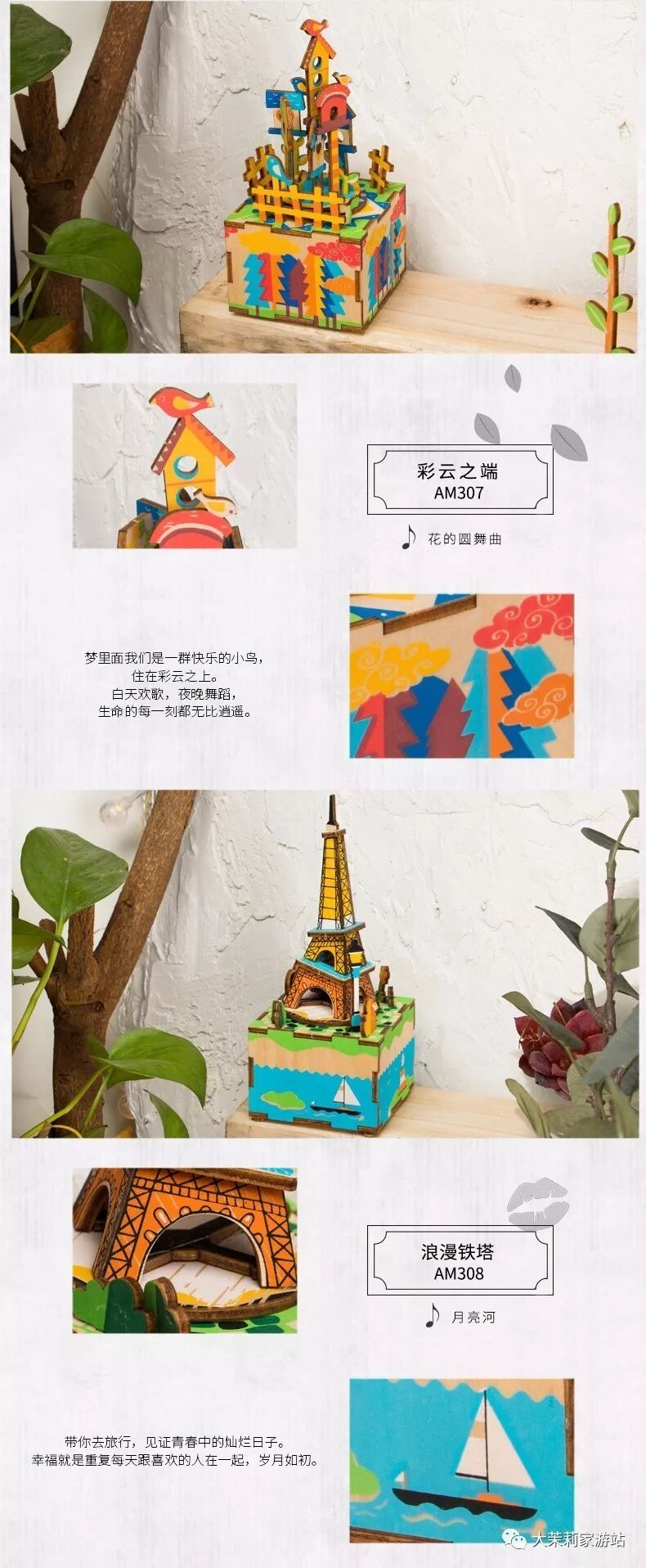 一个人同时下单4个八音盒,就会随机送出一套木质立体拼图