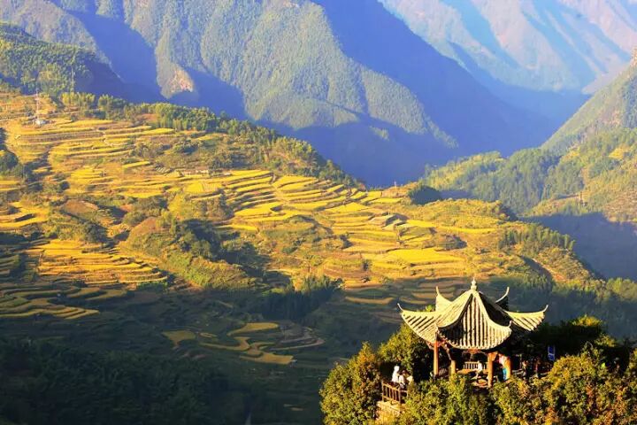 高山梯田和村落,云海连绵,宛若置身仙境里,挤入一线天,感受大自然的鬼斧神工,摆好造型,做个鬼脸,和你的他带走一份永久的纪念~