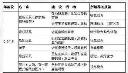 适合玩:摇响玩具(拨浪鼓、花铃棒等)、音乐玩具、活动玩具、镜子、悬挂玩具、图片(人像、有一定模式的黑白图片)。