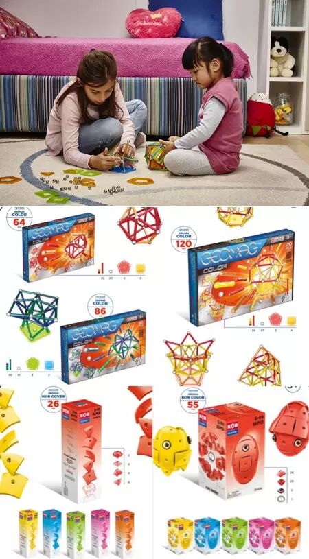 来自瑞士的GEOMAG智美高可以说是磁力棒的鼻祖,其最早于1998年由克劳迪奥维琴泰利先生(ClaudioVincetelli)研发,至今已有近20年历史。它的好玩之处在于,将磁力棒与各种形状的平面相组合,从而产生出无穷无尽的变换。