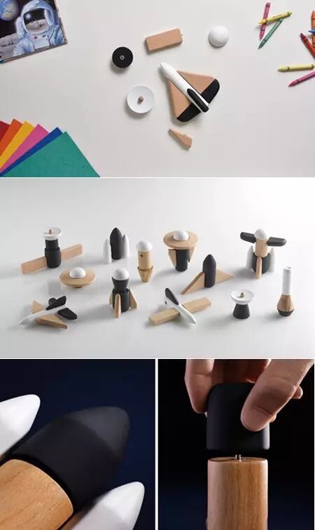 来自香港的玩具品牌Huzi Design推出的Cosmos系列天然木质玩具走了北欧系的清冷风格设计,选用天然榉木制作出精准的角度和形状,利用不见关节间的特质凹槽和内嵌的磁力部件进行互相搭建组合。