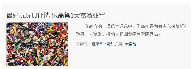 结果显示,乐高排名第一,是当之无愧的有史以来最好的玩具,几乎所有人都给它投了票。