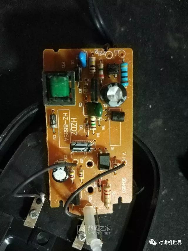 这是充电器拆开。注意解开螺丝撬的时候小心点,图上一横条这地方有卡口,最好在电源进线处撬。