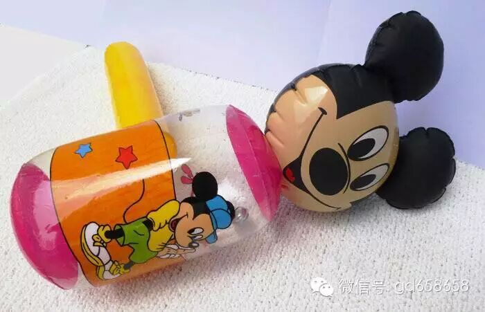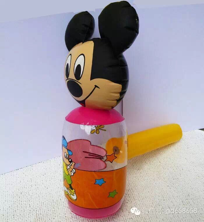 本店新款米老鼠充气锤 可以用于游泳池,打闹,海滩玩耍 气锤轻小,用时只要成人几口的气就能使气锤饱满。收起时只要放气就可收起,毫不占用多余的空间锤内带有压缩风笛,一捏一送会啾啾响,还有一个铃铛,发出声响。可以拿来哄小孩。幼儿啼哭,由于幼儿对新事物的好奇怎么会响。