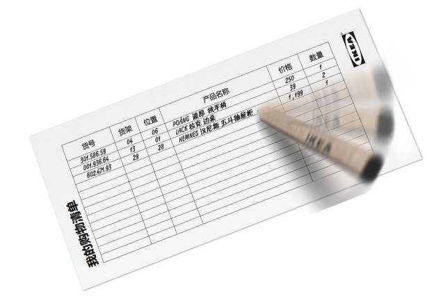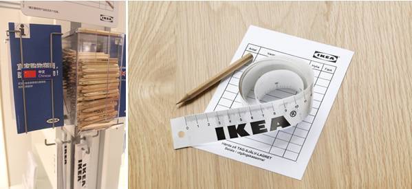 在宜家每层的每个销售区域,都有笔、尺以及纸张方便所有的宜粉们记录下自己心仪产品的货号以及取货点。有三宝护驾,购物不再操心!