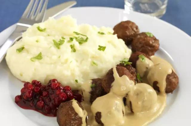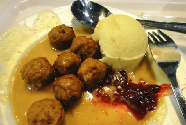 瑞典肉丸,10粒,15.5元,推荐排名老大的食物!瑞典传统配方之肉丸、越橘果酱、瑞典肉丸汁配煮马铃薯,肉丸非常有弹性呢,一口咬下去,还有淡淡的奶香味。