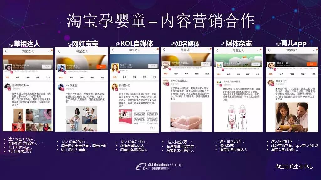 第三,我们会和更多CP共建导购社区,基于不同的圈子开发市场运作方案,所有内容提供者都可以参与,促进UGC社区的丰富性和引导性。这将是在座所有母婴媒体和内容合作机构的淘内唯一和首选平台,我们有专属小二来快速服务大家的内容合作。