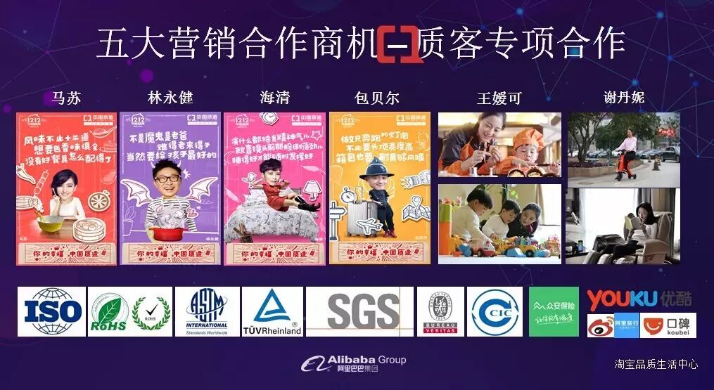 第五是联合营销合作商机。我们的80S用户关注健康的、有趣的、有家庭感的生活方式信息,为此淘宝品质生活中心会联合优酷亲子、阿里旅行、口碑、新浪等伙伴,共同创建话题,共同打造品质生活和用户的连接工具,如微制剧等。我们一起营造非常有意思的发现,再通过质客达人,连接海量优质商品。通过内外部形成的品质生活内容生态伙伴矩阵,进行整体营销沟通,重构基于生活方式的一个新的消费时代。