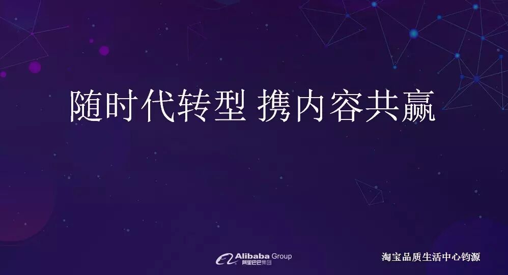 我今天分享的主题是《随时代转型 携内容共赢》。今天是内容消费的时代,淘宝品质生活中心到底如何与大家共同携手,在内容合作领域达成共赢,是我们今天要传递的关键信息。