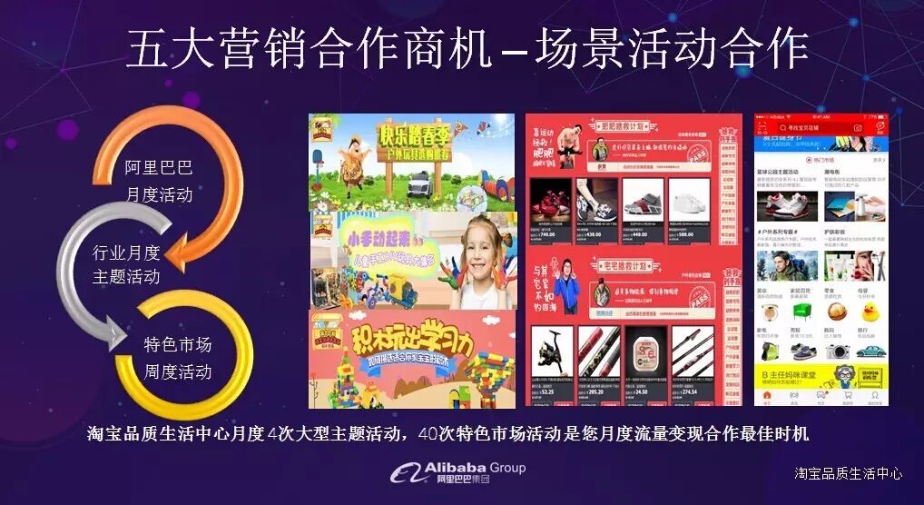 刚才讲了三大生意商机,再来讲讲淘宝品质生活中心的五大营销合作商机。