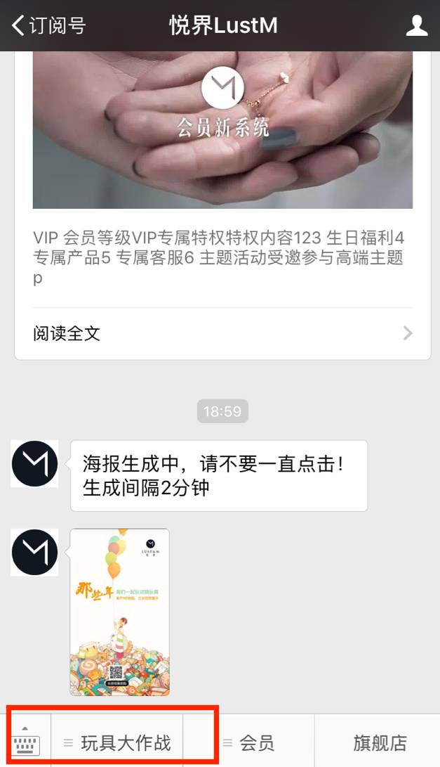 1、点击微信菜单【玩具大作战】--【获取钥匙】生成专属海报;