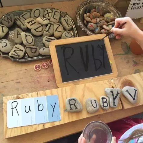 家里有小朋友的注意了,石头可绝对是天然的益智玩具!在石头上写上26个英文字母或汉字,让刚学单词的孩子来自由组合,开发脑力!