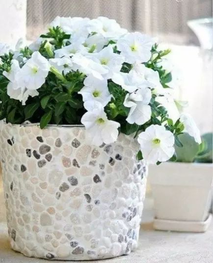 ▼用小石子堆砌成花盆,美得清新呀~~~做法同样很简单